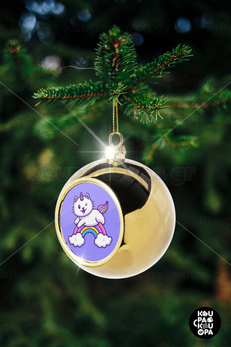 Cute cat unicorn, Στολίδι Χριστουγεννιάτικη μπάλα δένδρου Χρυσή 8cm
