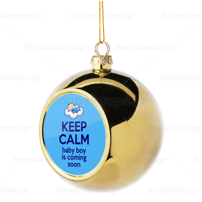 KEEP CALM baby boy is coming soon!!!, Στολίδι Χριστουγεννιάτικη μπάλα δένδρου Χρυσή 8cm