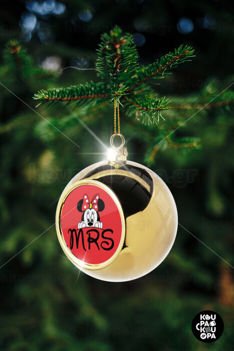 Minnie Mrs, Στολίδι Χριστουγεννιάτικη μπάλα δένδρου Χρυσή 8cm