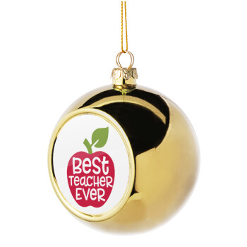 best teacher ever, apple!, Στολίδι Χριστουγεννιάτικη μπάλα δένδρου Χρυσή 8cm