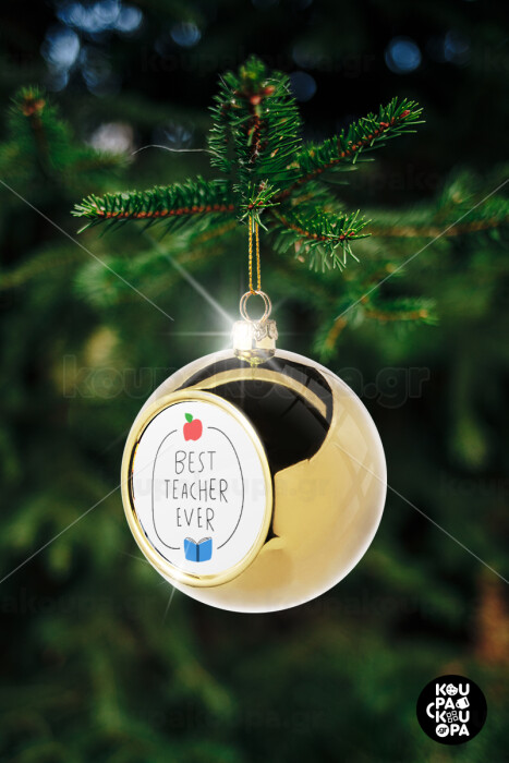 Best teacher ever, Στολίδι Χριστουγεννιάτικη μπάλα δένδρου Χρυσή 8cm