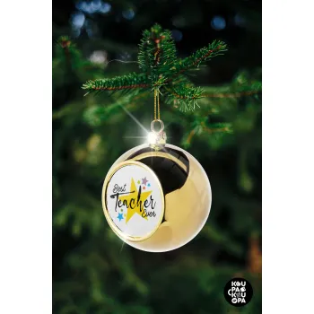 Teacher super star!!!, Στολίδι Χριστουγεννιάτικη μπάλα δένδρου Χρυσή 8cm