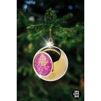 I'm Barbie girl, Στολίδι Χριστουγεννιάτικη μπάλα δένδρου Χρυσή 8cm