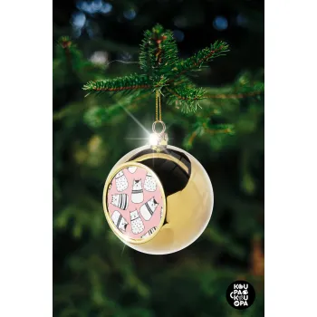 Cute cats, Στολίδι Χριστουγεννιάτικη μπάλα δένδρου Χρυσή 8cm