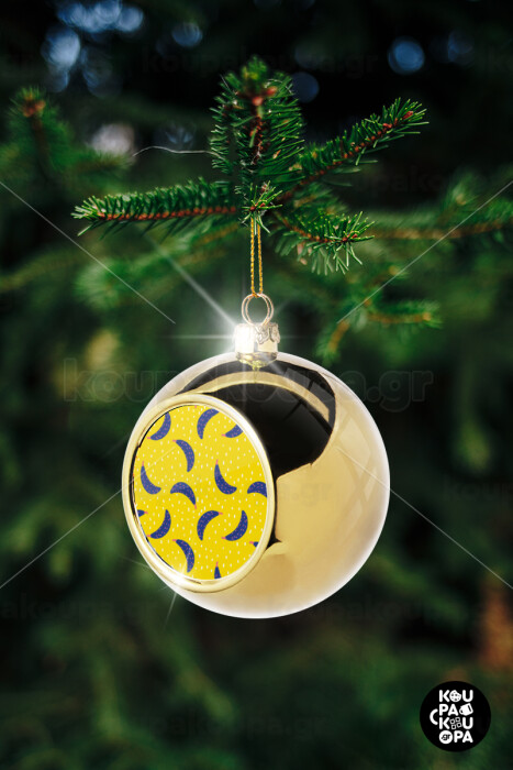 Yellow seamless with blue bananas, Στολίδι Χριστουγεννιάτικη μπάλα δένδρου Χρυσή 8cm