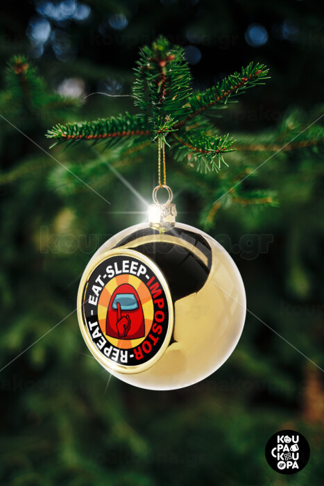 Among US Eat Sleep Repeat Impostor, Στολίδι Χριστουγεννιάτικη μπάλα δένδρου Χρυσή 8cm