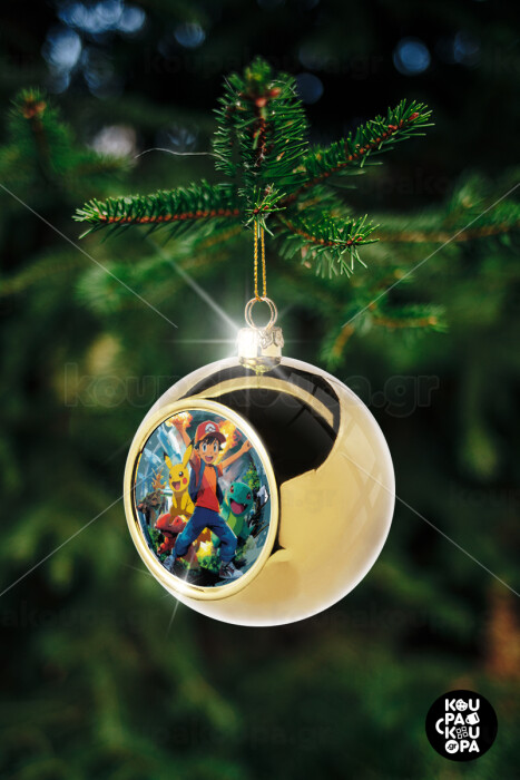 Ash Ketchum & Pikachu, Στολίδι Χριστουγεννιάτικη μπάλα δένδρου Χρυσή 8cm
