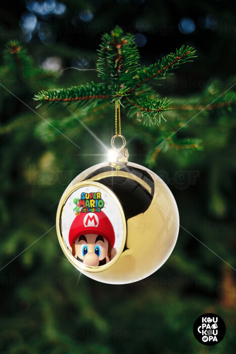 Super mario head, Στολίδι Χριστουγεννιάτικη μπάλα δένδρου Χρυσή 8cm