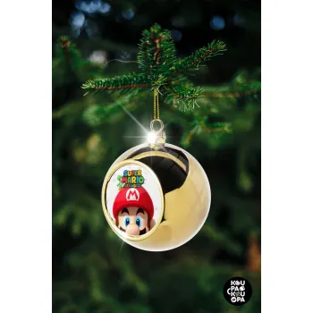 Super mario head, Στολίδι Χριστουγεννιάτικη μπάλα δένδρου Χρυσή 8cm