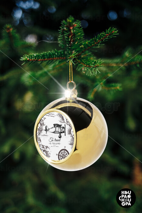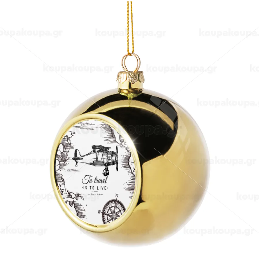 To travel is to live, Στολίδι Χριστουγεννιάτικη μπάλα δένδρου Χρυσή 8cm