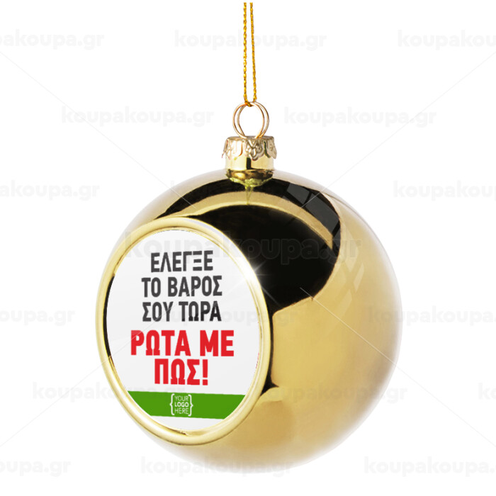 Έλεγξε το βάρος σου ρώτα με πως! {your logo here}, Στολίδι Χριστουγεννιάτικη μπάλα δένδρου Χρυσή 8cm