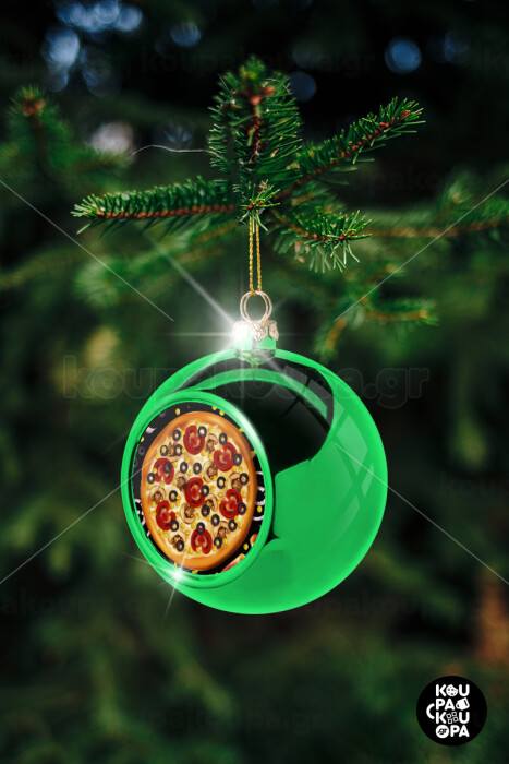 Pizza, Στολίδι Χριστουγεννιάτικη μπάλα δένδρου Πράσινη 8cm