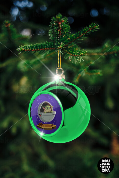 Baby Yoda mandalorian, Στολίδι Χριστουγεννιάτικη μπάλα δένδρου Πράσινη 8cm