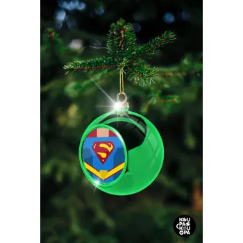 Superman flat, Στολίδι Χριστουγεννιάτικη μπάλα δένδρου Πράσινη 8cm