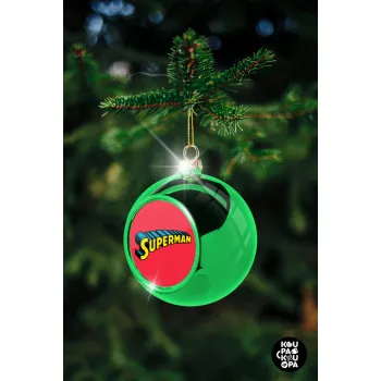 Superman vintage, Στολίδι Χριστουγεννιάτικη μπάλα δένδρου Πράσινη 8cm