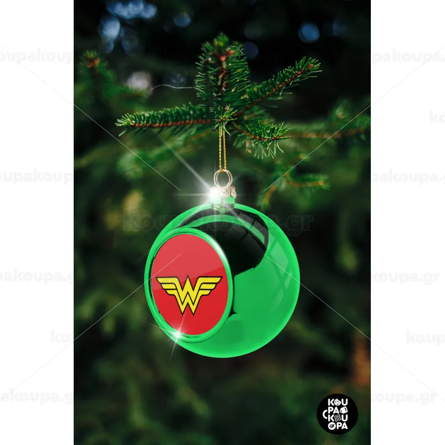 Wonder woman, Στολίδι Χριστουγεννιάτικη μπάλα δένδρου Πράσινη 8cm