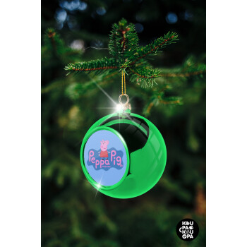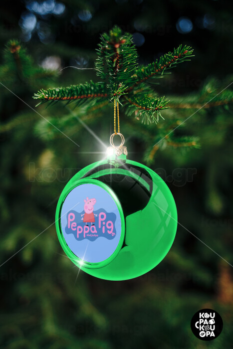 Πέππα το γουρουνάκι μπλε με όνομα, Στολίδι Χριστουγεννιάτικη μπάλα δένδρου Πράσινη 8cm