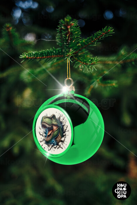 Dinosaur break wall, Στολίδι Χριστουγεννιάτικη μπάλα δένδρου Πράσινη 8cm