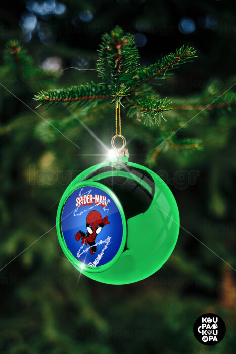 Spiderman kid, Στολίδι Χριστουγεννιάτικη μπάλα δένδρου Πράσινη 8cm