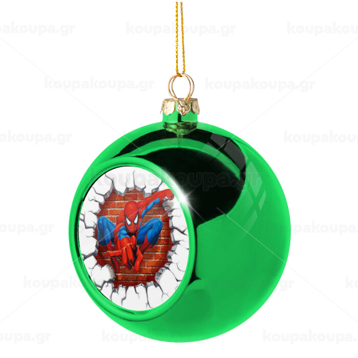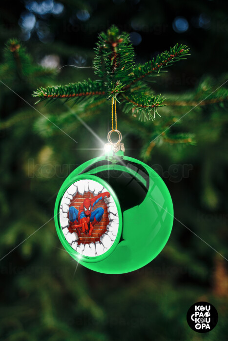 Spiderman wall, Στολίδι Χριστουγεννιάτικη μπάλα δένδρου Πράσινη 8cm