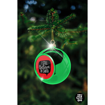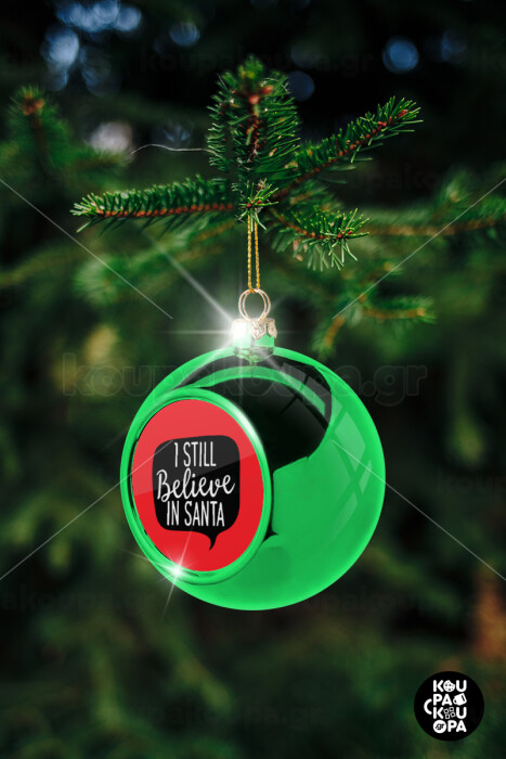 Ι still believe in santa, Στολίδι Χριστουγεννιάτικη μπάλα δένδρου Πράσινη 8cm