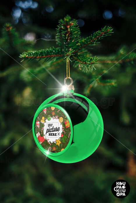 PHOTO Christmas twitch, Στολίδι Χριστουγεννιάτικη μπάλα δένδρου Πράσινη 8cm