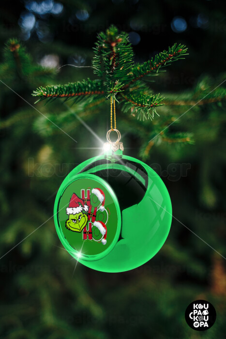 Grinch ho ho ho, Στολίδι Χριστουγεννιάτικη μπάλα δένδρου Πράσινη 8cm
