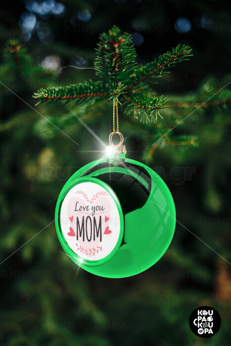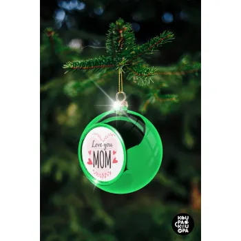 Mother's day I Love you Mom heart, Στολίδι Χριστουγεννιάτικη μπάλα δένδρου Πράσινη 8cm