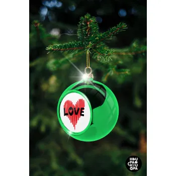I Love You red heart, Στολίδι Χριστουγεννιάτικη μπάλα δένδρου Πράσινη 8cm