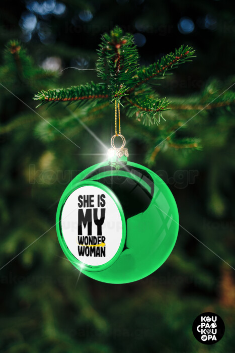 She is my wonder woman, Στολίδι Χριστουγεννιάτικη μπάλα δένδρου Πράσινη 8cm