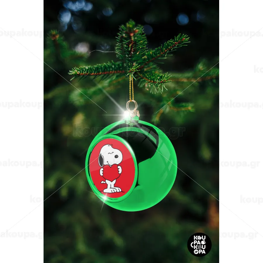 Snoopy takemy heart, Στολίδι Χριστουγεννιάτικη μπάλα δένδρου Πράσινη 8cm