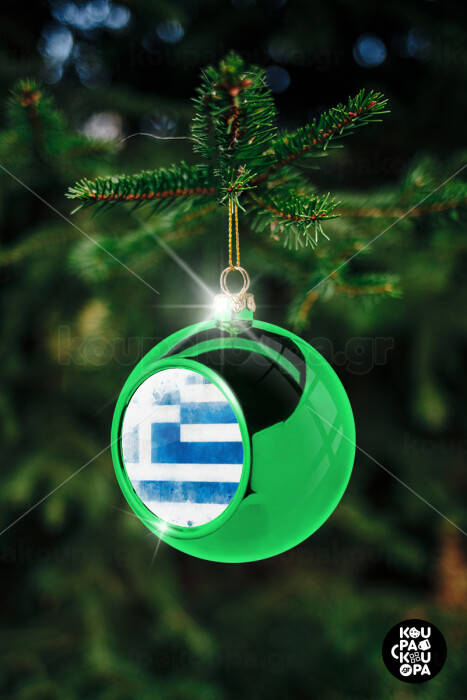 Ελληνική σημαία watercolor, Στολίδι Χριστουγεννιάτικη μπάλα δένδρου Πράσινη 8cm