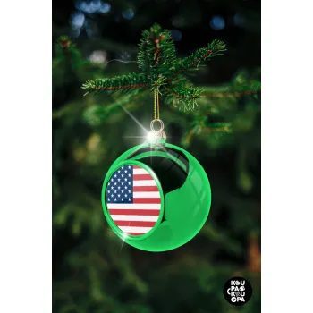 USA flag, Στολίδι Χριστουγεννιάτικη μπάλα δένδρου Πράσινη 8cm
