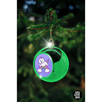 Cute cat unicorn, Στολίδι Χριστουγεννιάτικη μπάλα δένδρου Πράσινη 8cm