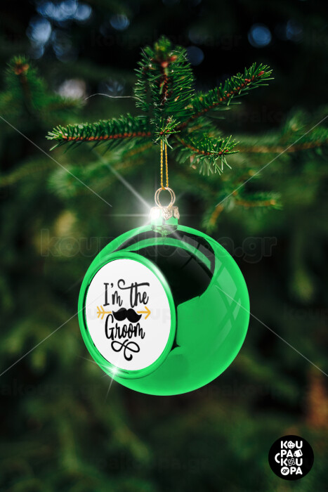I'm the groom mustache, Στολίδι Χριστουγεννιάτικη μπάλα δένδρου Πράσινη 8cm