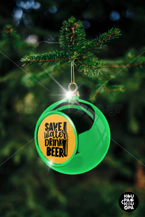 Save Water, Drink BEER, Στολίδι Χριστουγεννιάτικη μπάλα δένδρου Πράσινη 8cm