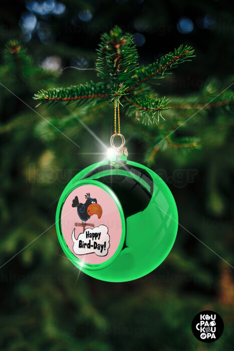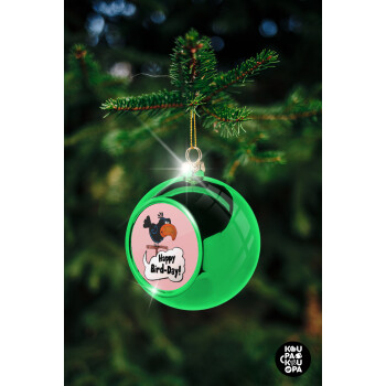 Happy Bird Day, Στολίδι Χριστουγεννιάτικη μπάλα δένδρου Πράσινη 8cm