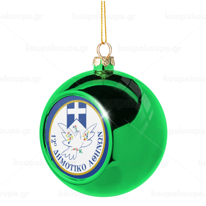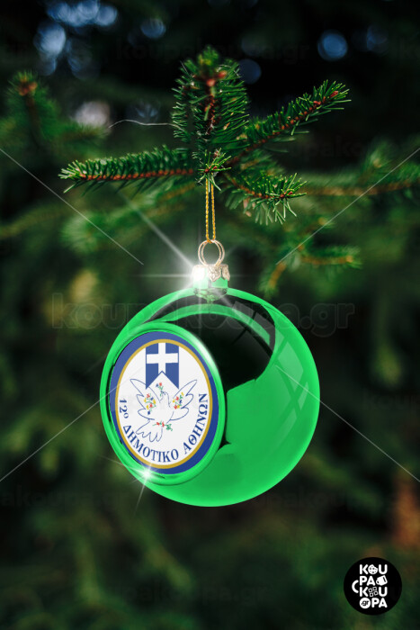 Σχολικό σήμα περιστέρι με δάφνες, Στολίδι Χριστουγεννιάτικη μπάλα δένδρου Πράσινη 8cm