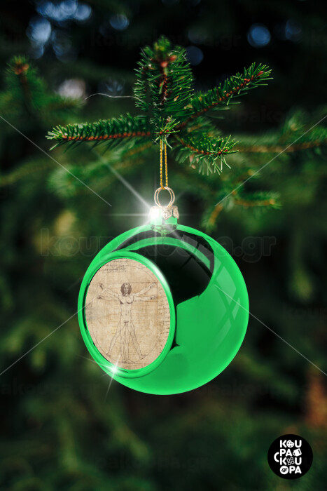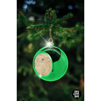 Leonardo da vinci Vitruvian Man, Στολίδι Χριστουγεννιάτικη μπάλα δένδρου Πράσινη 8cm