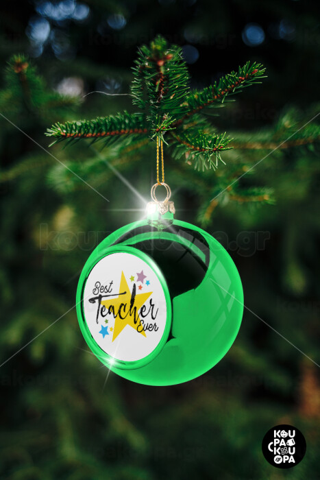 Teacher super star!!!, Στολίδι Χριστουγεννιάτικη μπάλα δένδρου Πράσινη 8cm