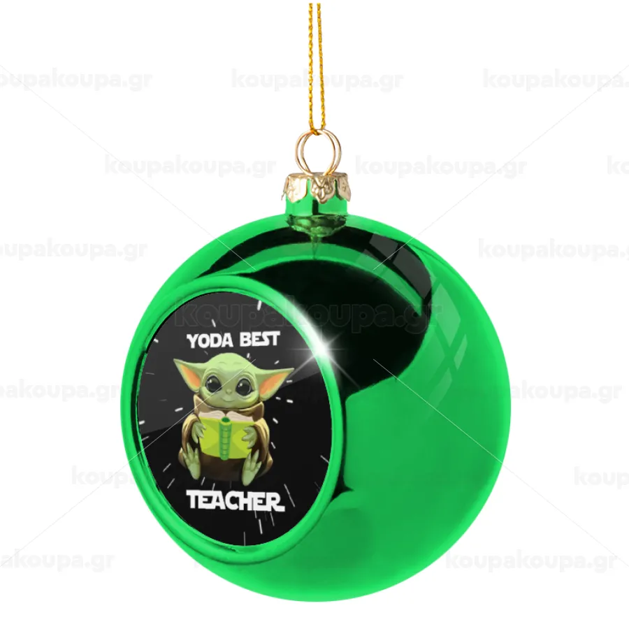 Yoda Best Teacher, Στολίδι Χριστουγεννιάτικη μπάλα δένδρου Πράσινη 8cm