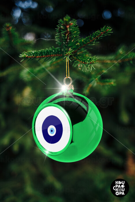Χάντρα γαλαζιά, Στολίδι Χριστουγεννιάτικη μπάλα δένδρου Πράσινη 8cm