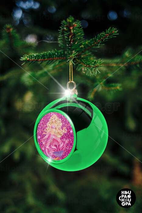Barbie γοργόνα , Στολίδι Χριστουγεννιάτικη μπάλα δένδρου Πράσινη 8cm
