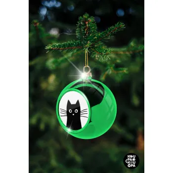 Μαύρη γάτα, Στολίδι Χριστουγεννιάτικη μπάλα δένδρου Πράσινη 8cm