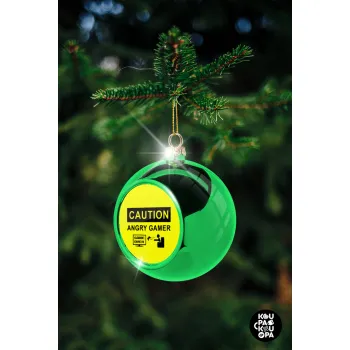 Caution, angry gamer!, Στολίδι Χριστουγεννιάτικη μπάλα δένδρου Πράσινη 8cm