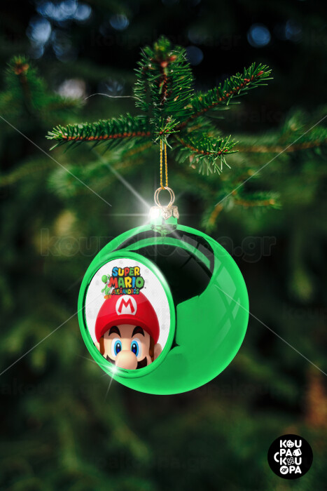 Super mario head, Στολίδι Χριστουγεννιάτικη μπάλα δένδρου Πράσινη 8cm