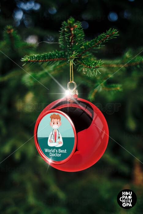 World's Best Doctor, Χριστουγεννιάτικη μπάλα δένδρου Κόκκινη 8cm