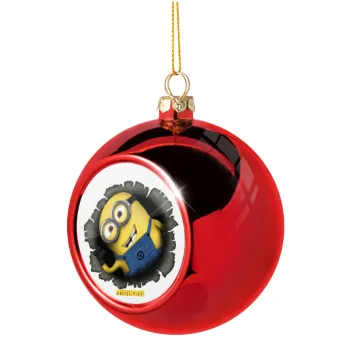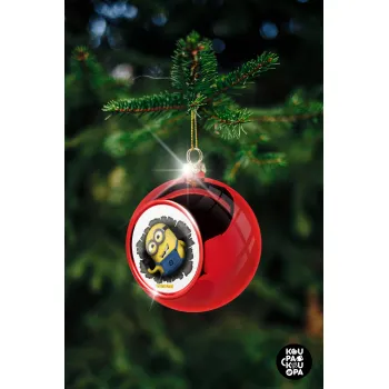 Minions hi, Χριστουγεννιάτικη μπάλα δένδρου Κόκκινη 8cm