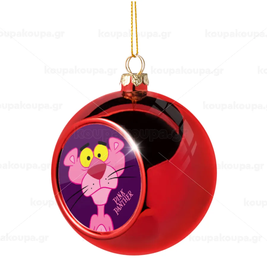 Pink Panther cartoon, Χριστουγεννιάτικη μπάλα δένδρου Κόκκινη 8cm