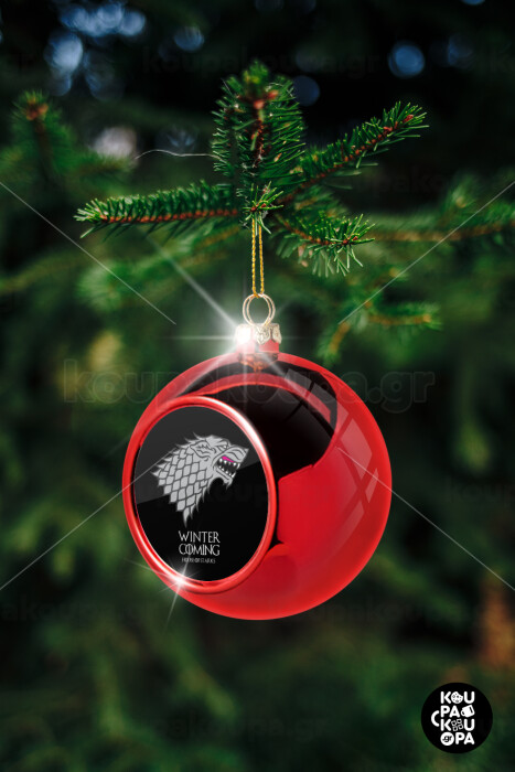 GOT House of Starks, winter coming, Χριστουγεννιάτικη μπάλα δένδρου Κόκκινη 8cm